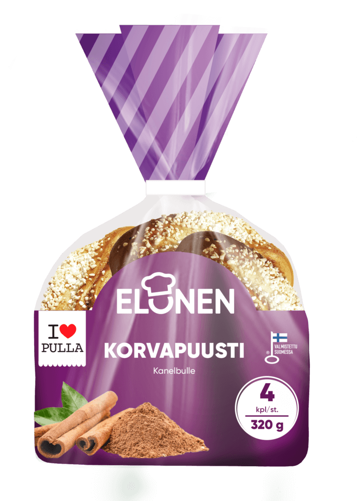 Herkulliset Korvapuustit, jotka on leivottu aidolla voilla ja maustettu pehmeästi kardemummalla. Tämän ihanan puustin välissä on runsaasti herkullista kanelitäytettä. Elosen perheleipomon pullaherkut leivotaan aurinkosähköllä Keski-Suomen sydämessä, Jämsässä.