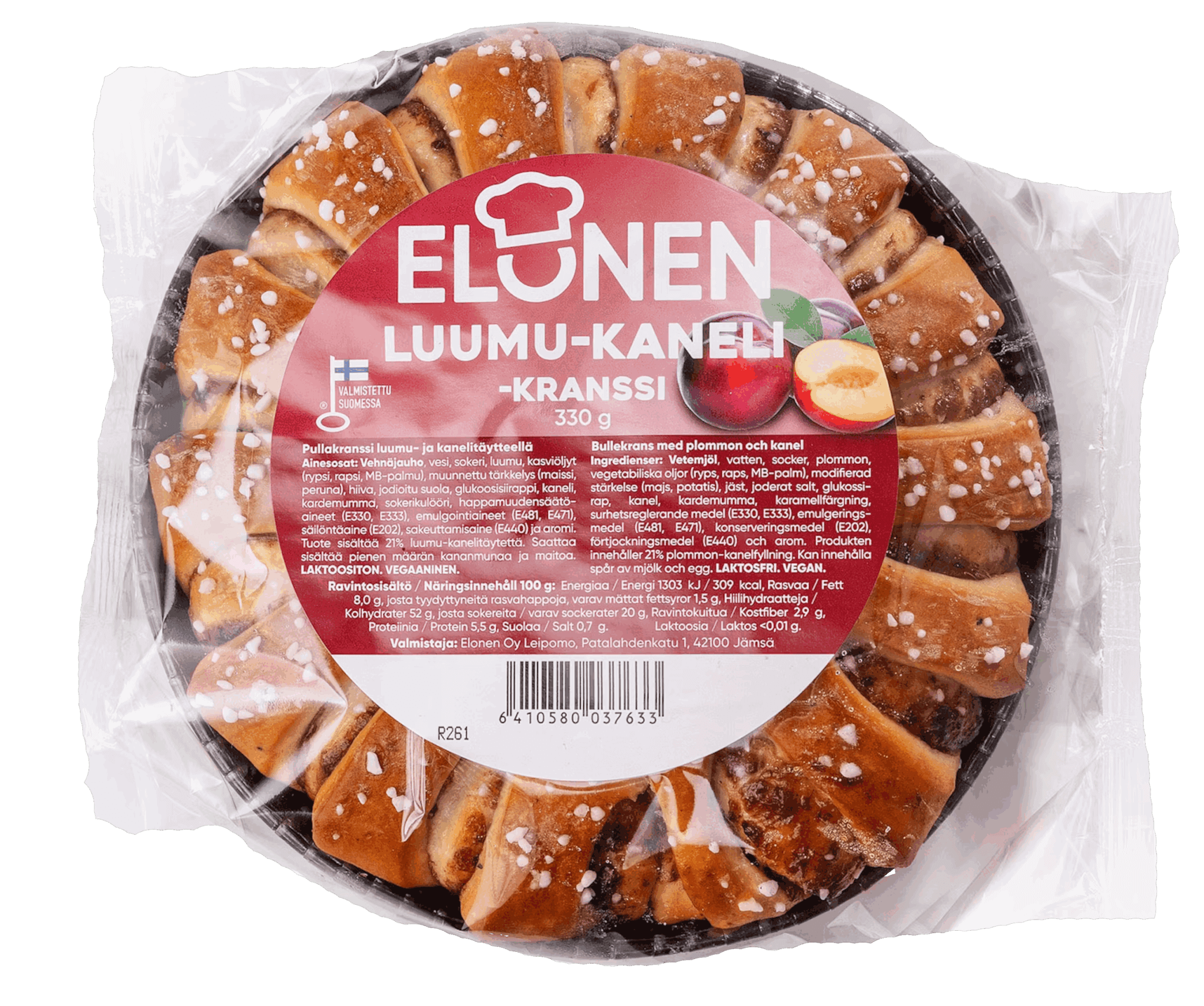 Kotimainen, mehevä vegaaninen pullakranssi, jonka täytteessä yhdistyvät perinteiset joulun maut: luumu ja kaneli. Luumu-kanelikranssi on joulunajan kahvipöydän luottotuote, joka hurmaa herkullisuudellaan.