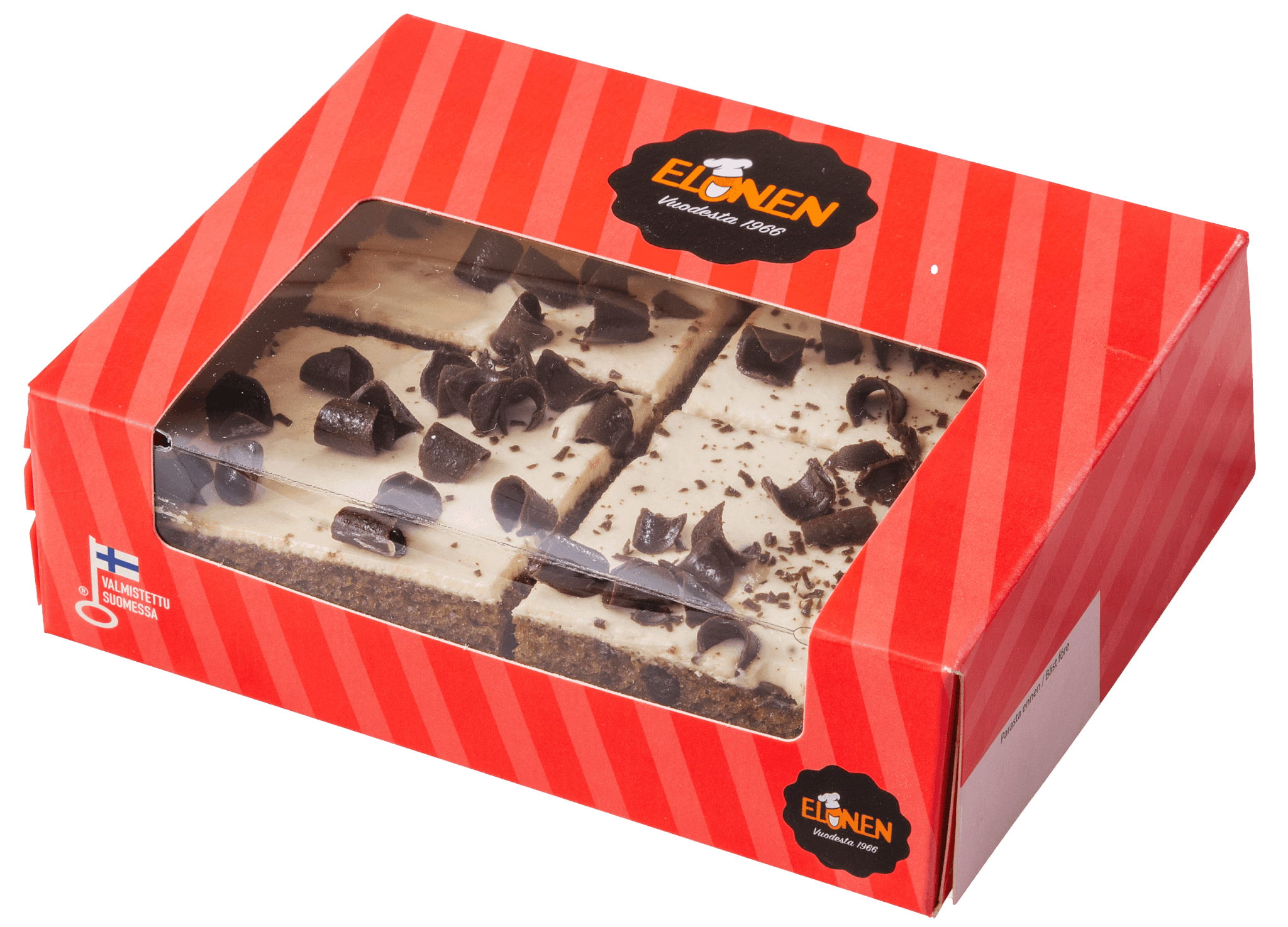VEHNÄJAUHO, KANANMUNA, banaani (17%), sokeri, kasviöljyt (rypsi, SG-palmu, kookos), laktoositon tuorejuusto (pastöroidusta MAIDOSTA), laktoositon MAITORAHKA, kaakaomassa, kaakaojauhe, kaakaovoi, VOIÖLJY, emulgointiaineet (E471, E477, E481, lesitiinit (SOIJA ja auringonkukka)), vesi, nostatusaineet (E450, E500), täyteaine (polydekstroosi), sakeuttamisaine (E415), muunnettu maissitärkkelys, säilöntäaine (E202), kaneli, suola, värit (E100, E160e), luontainen vanilja-aromi ja aromit (mm. banaani, vanilliini).