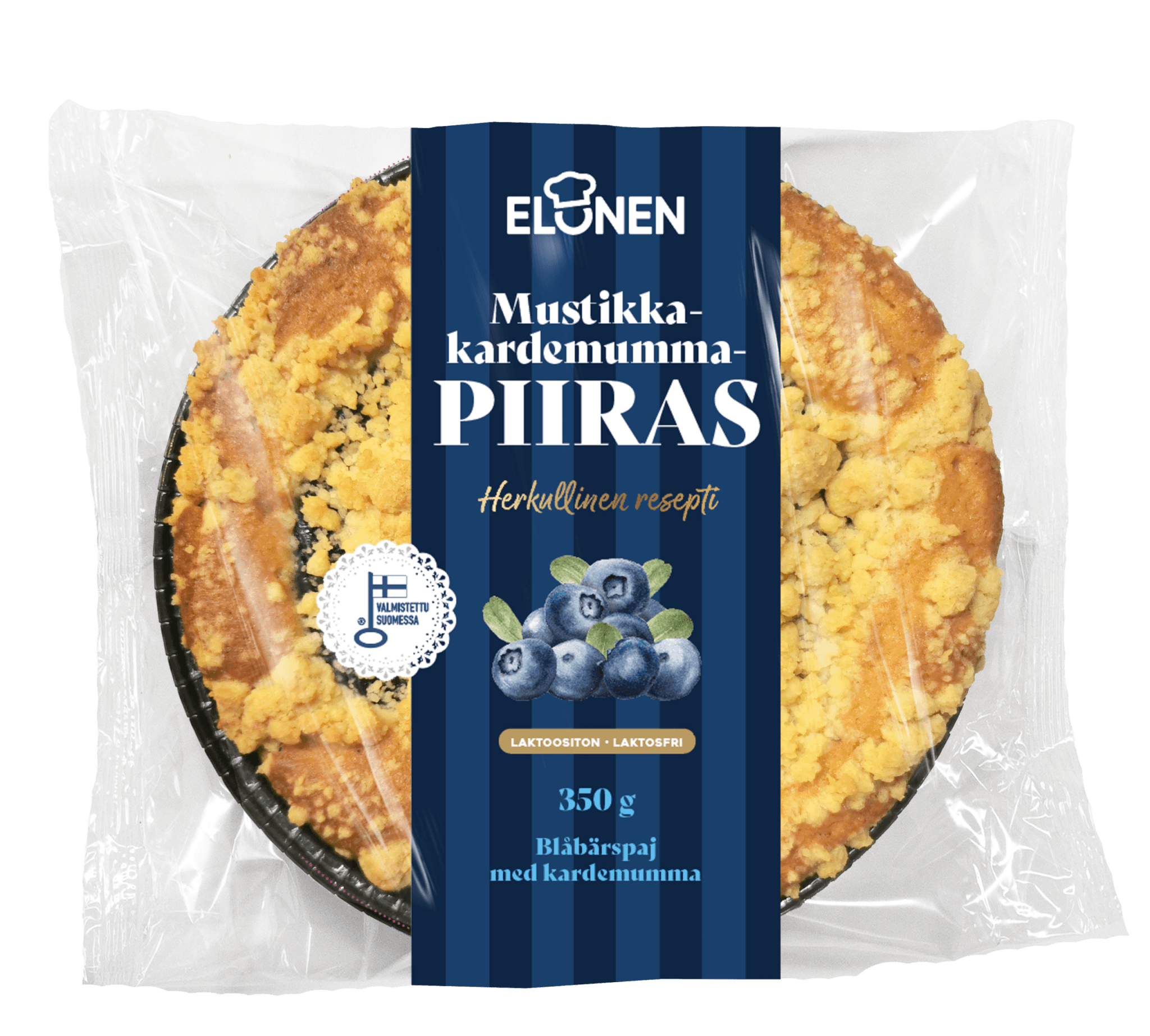Klassisessa, mehevässä Mustikka-kardemummapiiraassa on runsaasti herkullista täytettä. Piiraan kruunaa pinnalle ripoteltu ihana stroisselimuru. Piiras on mitä parhain herkku mökkituliaisiksi, rantaevääksi tai vaikka piknikille, sillä se säilyy huoneenlämmössä. Piiras maistuu kaikille mutta sopii myös vegaaneille.