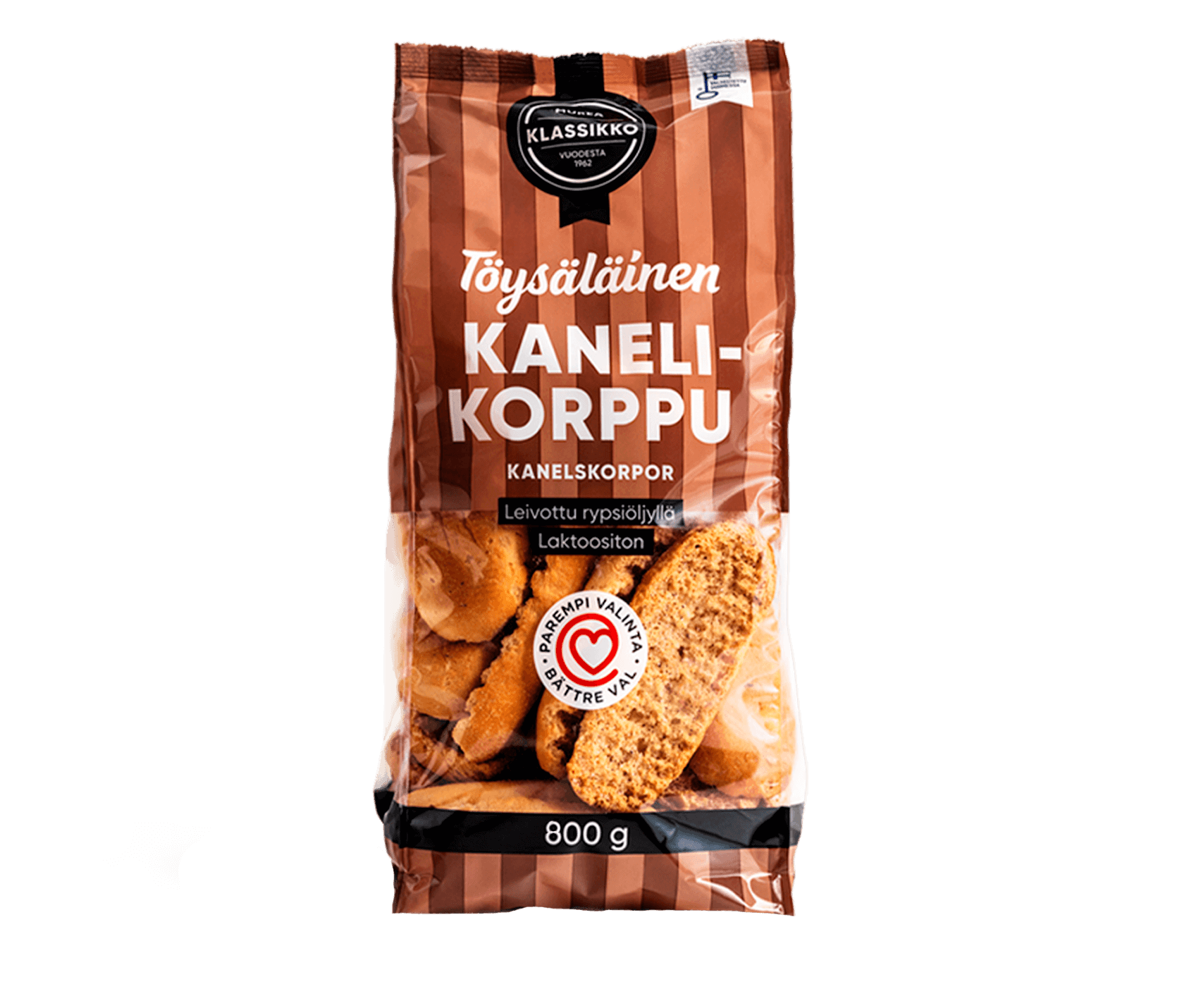 Töysäläinen Kanelikorppu on huippusuosittu herkku, joka yhdistää rapeuden ja murean koostumuksen. Rypsiöljyyn leivottu ja runsaskuituinen korppu sopii täydellisesti niin arkeen kuin herkutteluhetkiin. Lisäksi se on laktoositon ja Sydänmerkki-tuote, eli terveellisempi valinta ilman kompromisseja maussa. Kasta korppu kahviin ja nauti perinteisestä makuelämyksestä – juuri niin kuin ennen vanhaan!